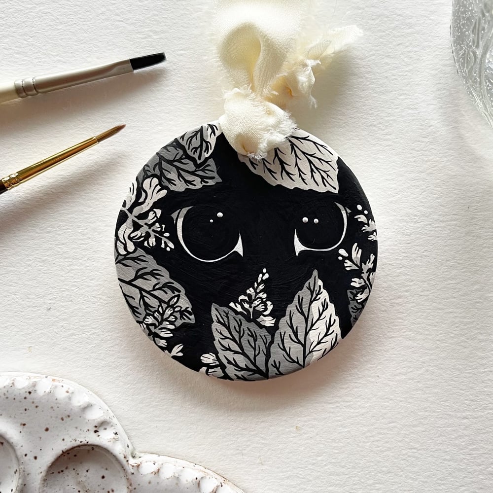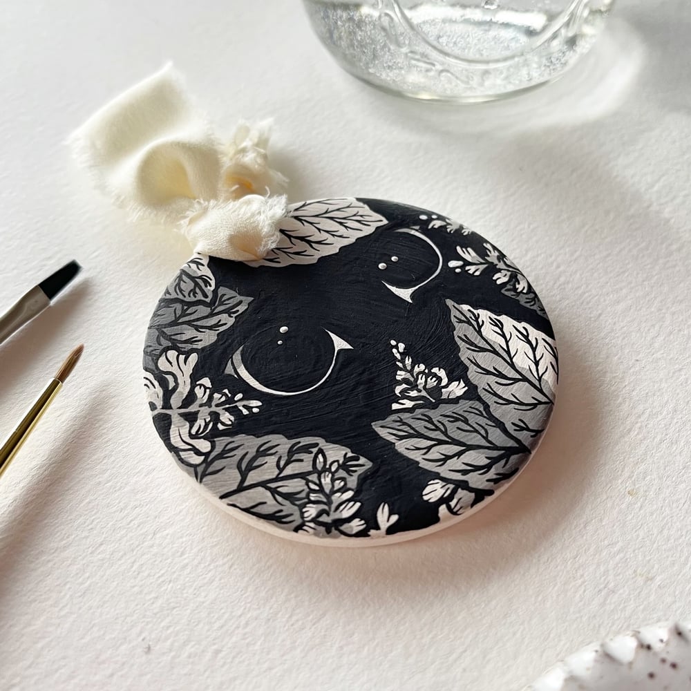 Hand-painted with ink and acrylic gouache, this one-of-a-kind manga-inspired ornament will add a little whimsy to your Christmas tree (or wherever you choose to hang it!).